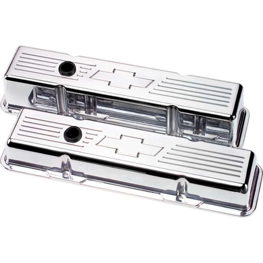 Valve Cover – Tall – Ball Milled – Baffled – Breather Hole – Grommets – Bowtie – Billet Aluminum – Polished – Small Block Chevy – Pair