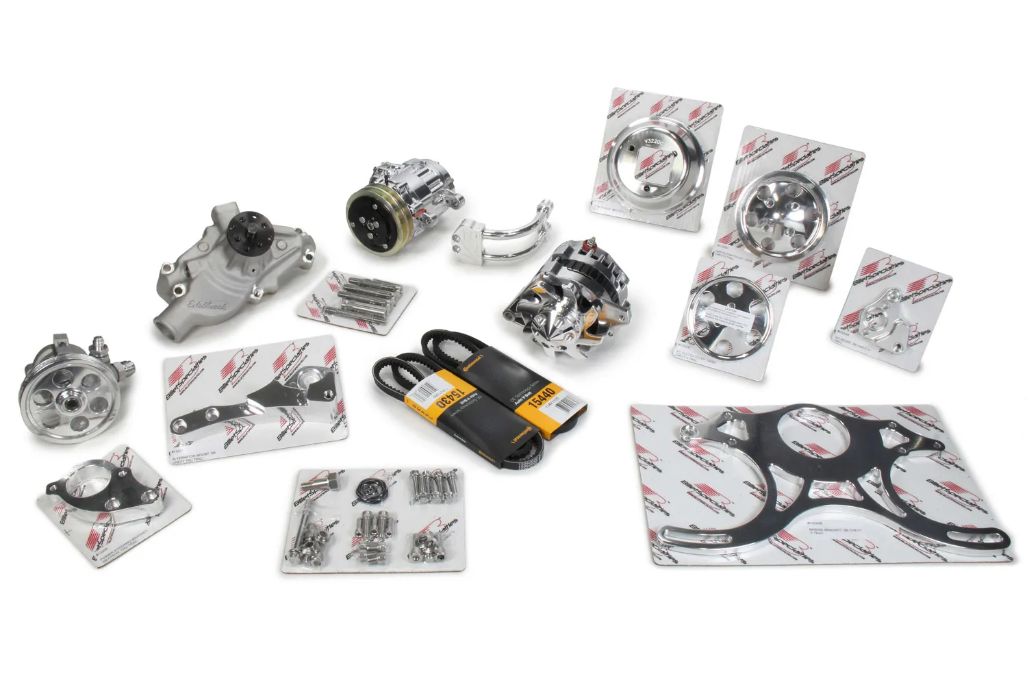 Pulley Kit – V-Trac – 2 Groove V-Belt – Billet Aluminum – Polished – Small Block Chevy – Kit