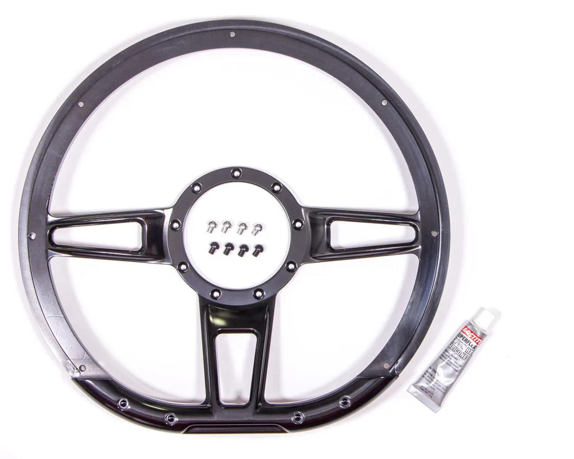 Steering Wheel – Formula – 14 in Diameter – D-Shaped – 2 in Dish – 3-Spoke – Milled Finger Notches – Billet Aluminum – Black Anodized – Each