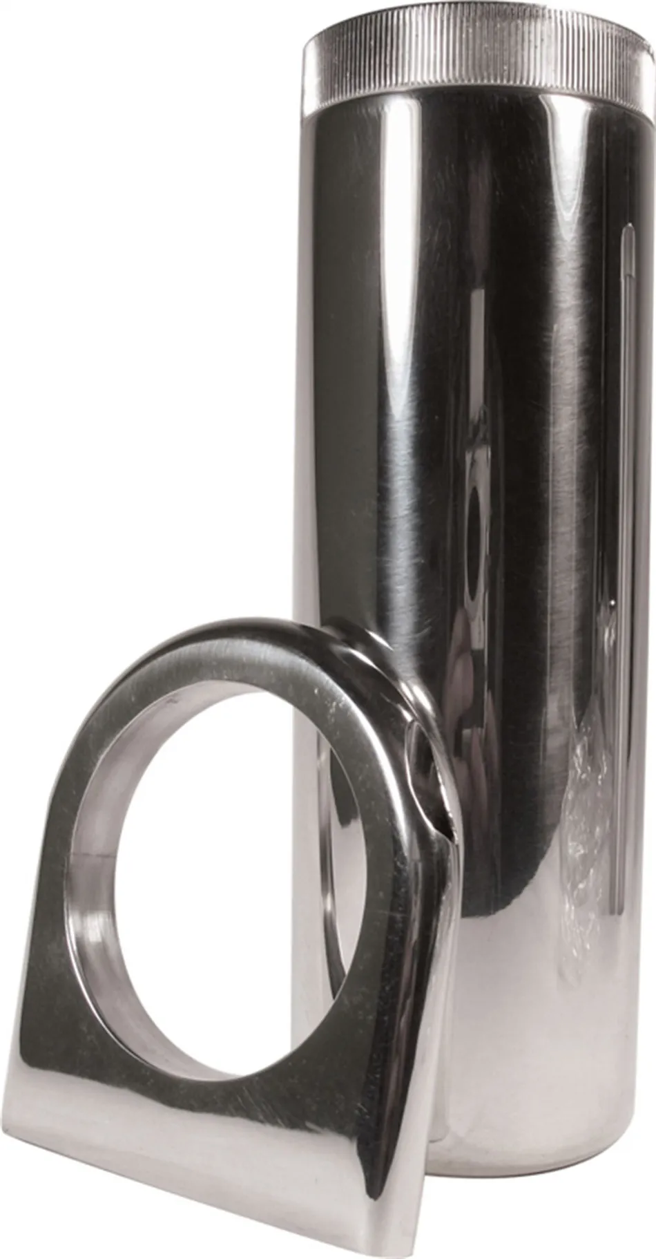 Power Steering Reservoir – 7 in Tall x 2.5 in OD – 3/8 in NPT Male Inlet – 5/8 in NPT Male Outlet – Bracket / Cap – Aluminum – Polished – Each