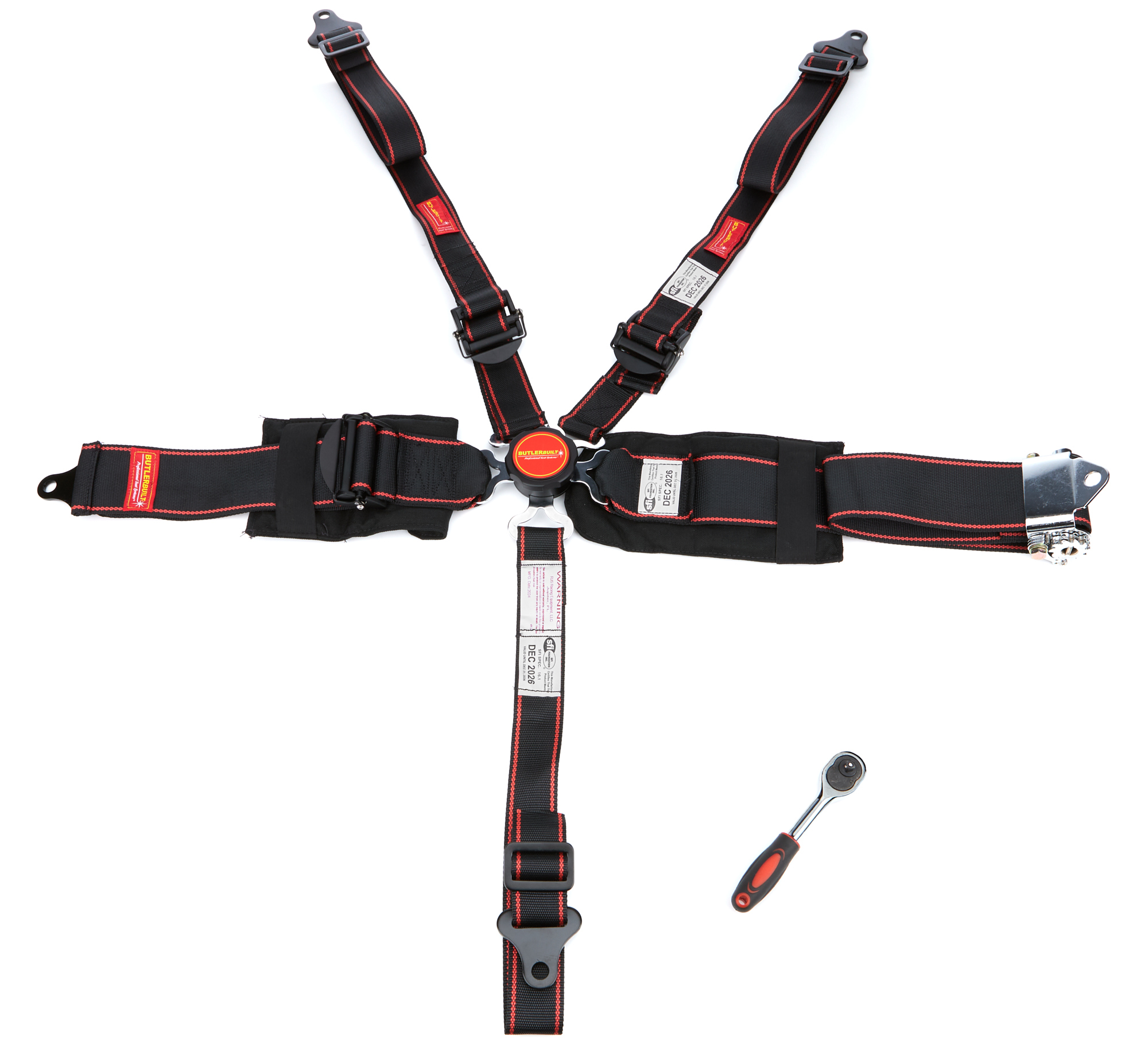 Harness – Elite – 5 Point – Camlock – SFI 16.1 – Pull Up / Ratchet Adjust – Bolt-In – Individual Harness – Black – Kit