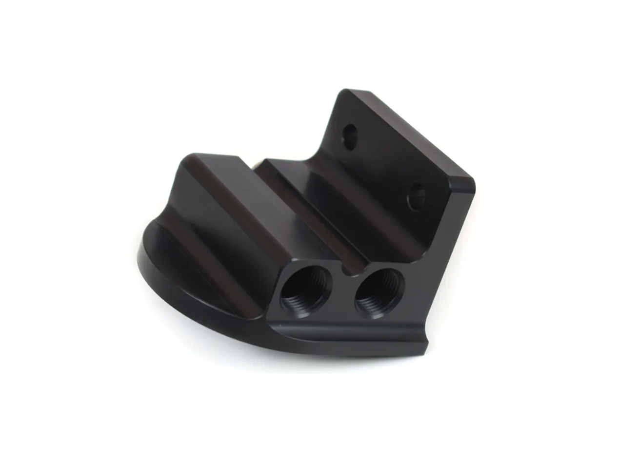Oil Filter Mount – Four 1/2 in NPT Female Ports – 13/16-16 in Center Thread – Billet Aluminum – Black Anodized – Universal – Each