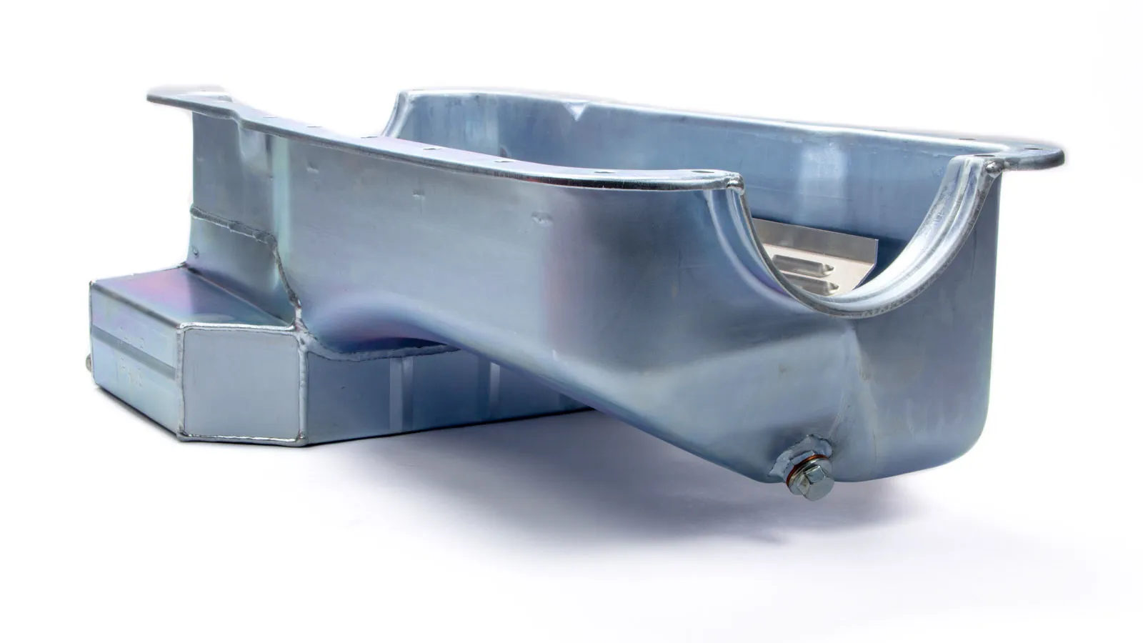 Engine Oil Pan – Circle Track – Rear Sump – 8 qt – 7 in Deep – Steel – Zinc Plated – Small Block Ford – Each
