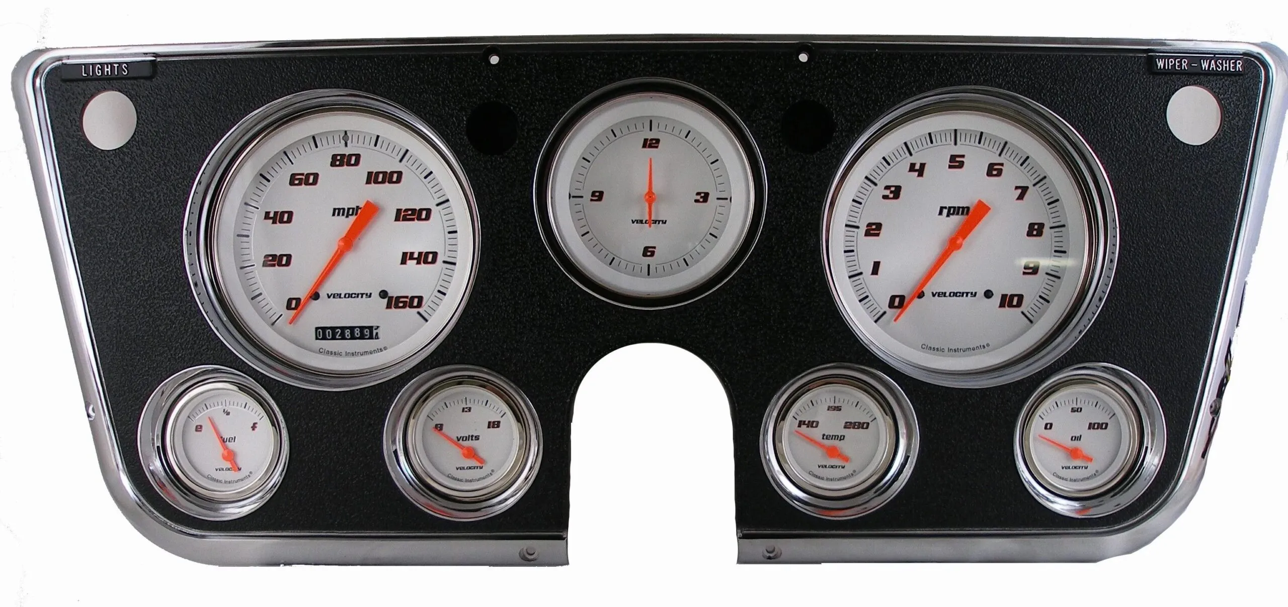 Gauge Kit – Velocity Series – Analog – Clock / Fuel Level / Oil Pressure / Speedometer / Tachometer / Voltmeter / Water Temperature – White Face – GM Fullsize Truck 1967-72 – Kit