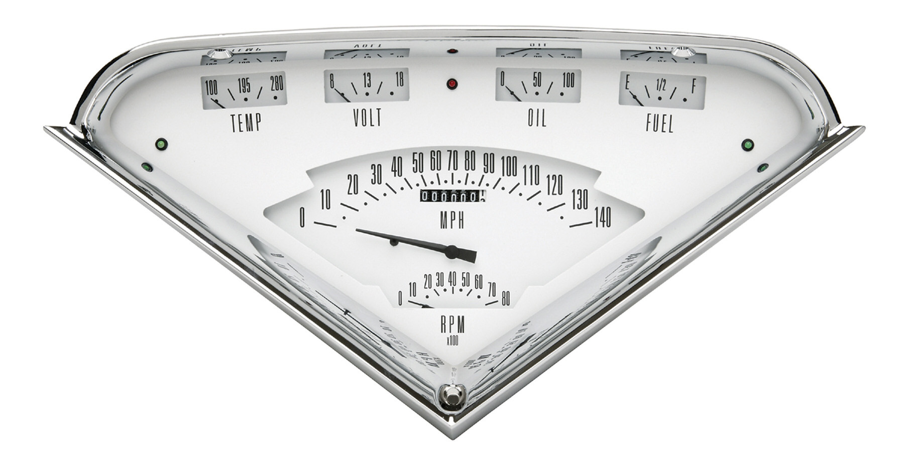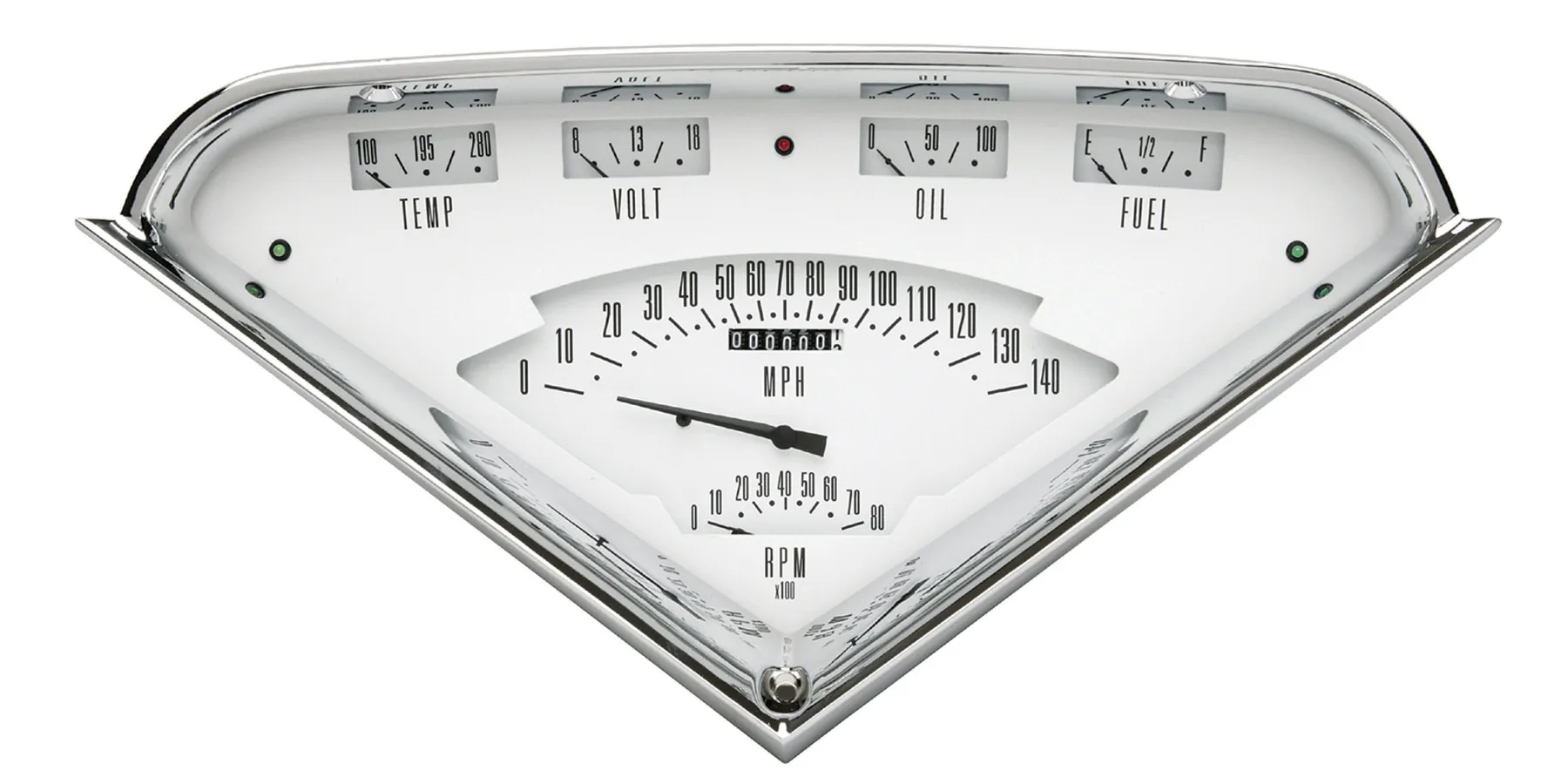 Gauge Kit – Tach Force – Analog – Water Temperature / Voltmeter / Oil Pressure / Fuel Pressure / Tachometer / Speedometer – White / Chrome Panel – GM Fullsize Truck 1955-59 – Kit
