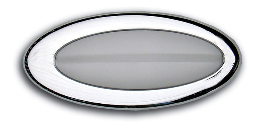 Dome Light – Elliptical – 12V Bulb – Frosted Lens – Surface Mount – Hardware Included – Aluminum – Chrome – Each