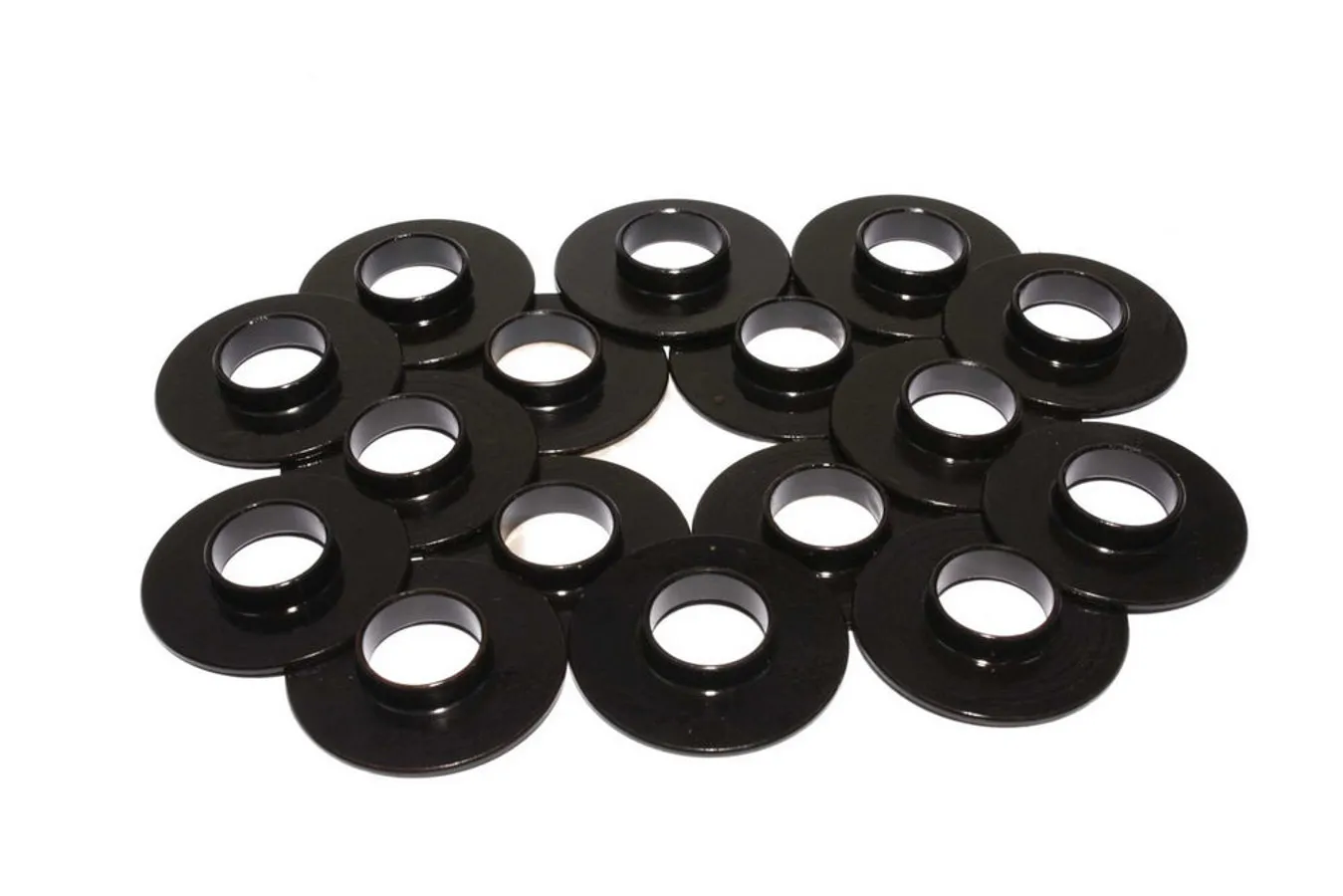 Valve Spring Locator – Inside – 0.060 in Thick – 1.540 in OD – 0.640 in ID – 0.750 in Spring ID – Steel – Set of 16