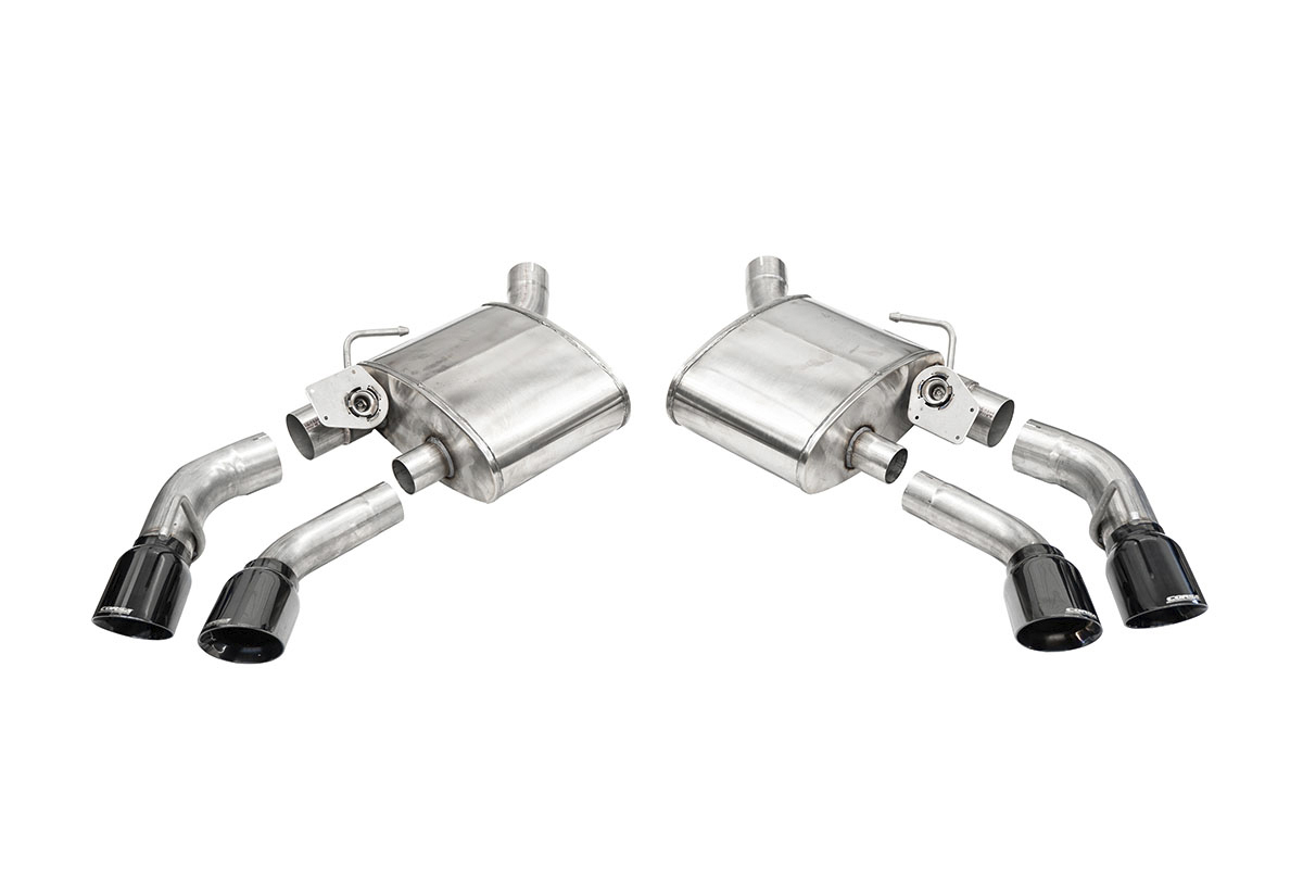 Exhaust System – Variable Sound Level – Axle-Back – 2.75 in Diameter – Dual Rear Exit – Dual 4 in Black Tips – Stainless – Natural – Chevy Camaro 2016-24 – Kit