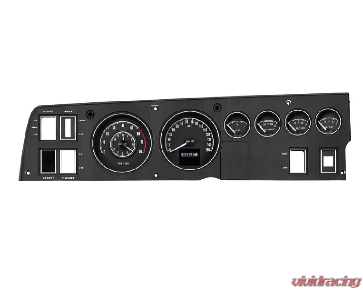 Gauge Kit – RTX Series – Analog – Fuel / Oil Pressure / Speedometer / Tachometer / Voltmeter / Water Temperature – Black Face – Mopar B-Body 1968-70 – Kit