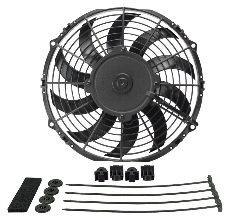 Electric Cooling Fan – High Output – 10 in Fan – Puller – 802 CFM – 12V – Curved Blade – 11.125 x 10.5 in – 2.063 in Thick – Install Kit – Plastic – Kit