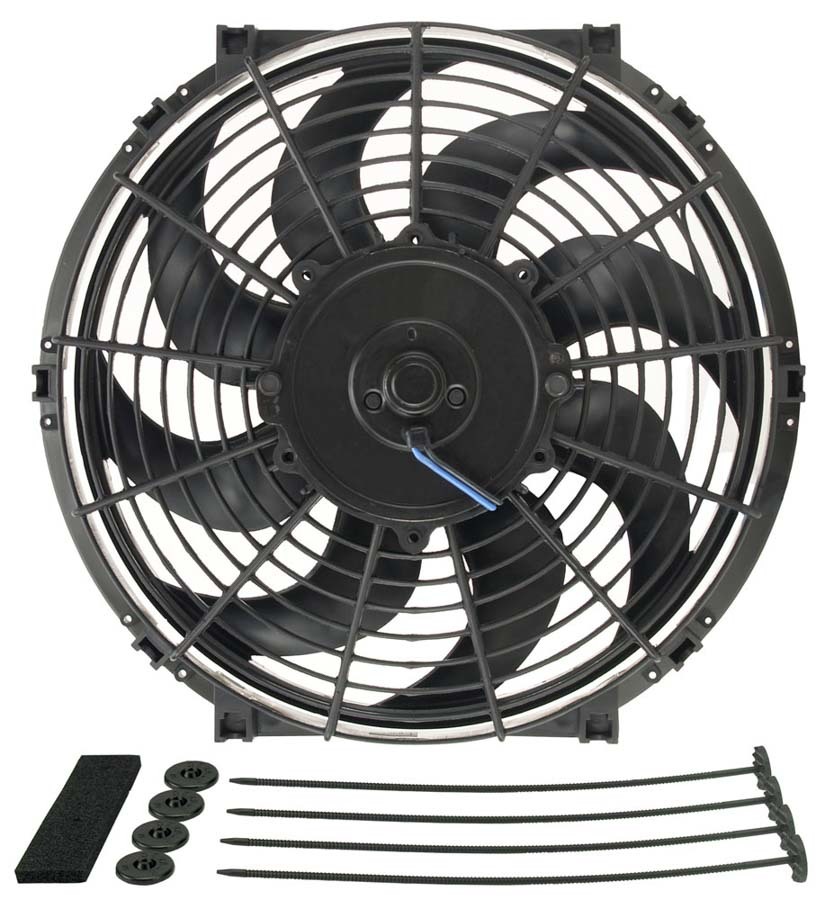 Electric Cooling Fan – Tornado – 12 in Fan – Push / Pull – 880 CFM – 12V – Curved Blade – 11.5 x 12.5 in – 2.5 in Thick – Install Kit – Plastic – Kit