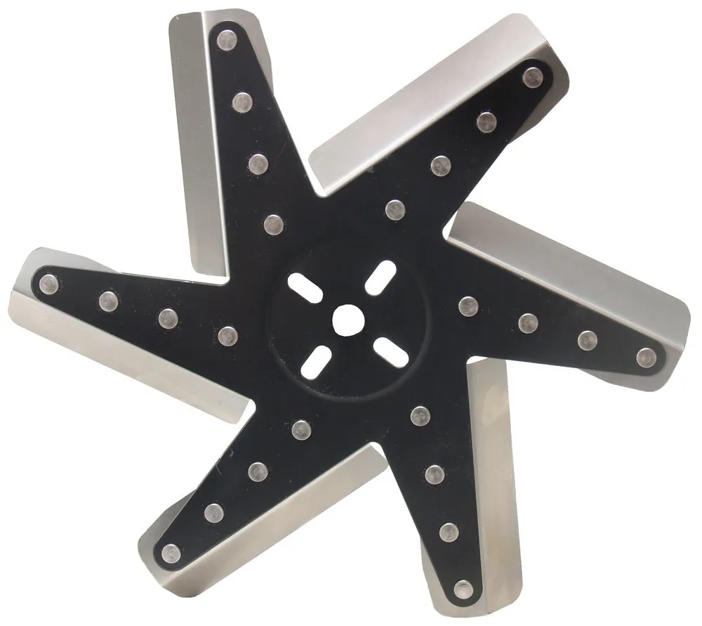 Mechanical Cooling Fan – Flex – 13 in Fan – 6 Blade – 5/8 in Pilot – Universal Bolt Pattern – Steel Hub / Stainless Blades – Black / Natural – Each