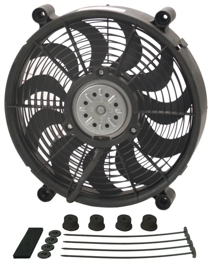 Electric Cooling Fan – HO RAD – 14 in Fan – Push / Pull – 2100 CFM – 12V – Curved Blade – 14.5 in Square – 2.625 in Thick – Install Kit – Plastic – Kit