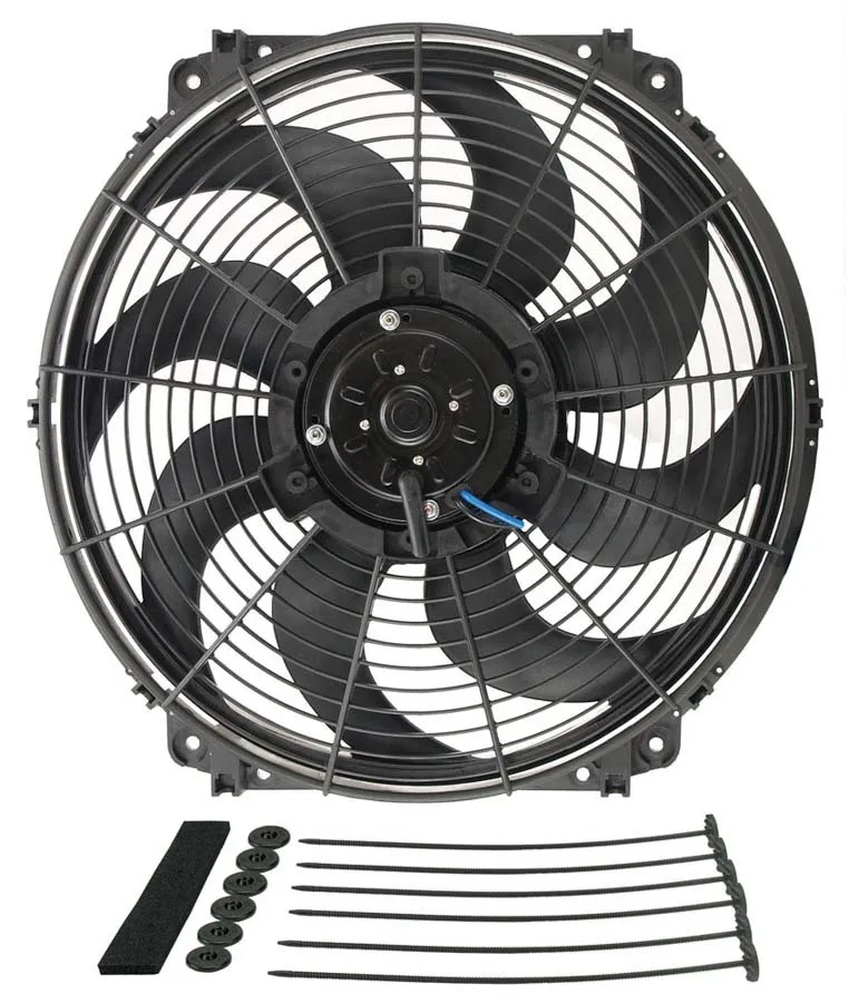 Electric Cooling Fan – Tornado – 16 in Fan – Push / Pull – 2175 CFM – 12V – Curved Blade – 15.75 x 16.75 in – 4.125 in Thick – Install Kit – Plastic – Kit
