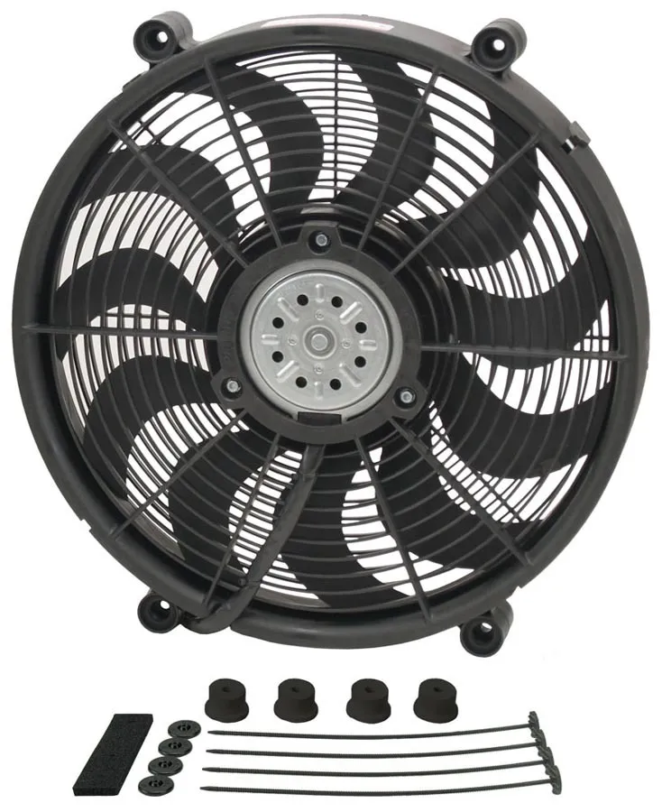 Electric Cooling Fan – HO RAD – 17 in Fan – Push / Pull – 2400 CFM – 12V – Curved Blade – 16.875 in Square – 2.625 in Thick – Install Kit – Plastic – Kit