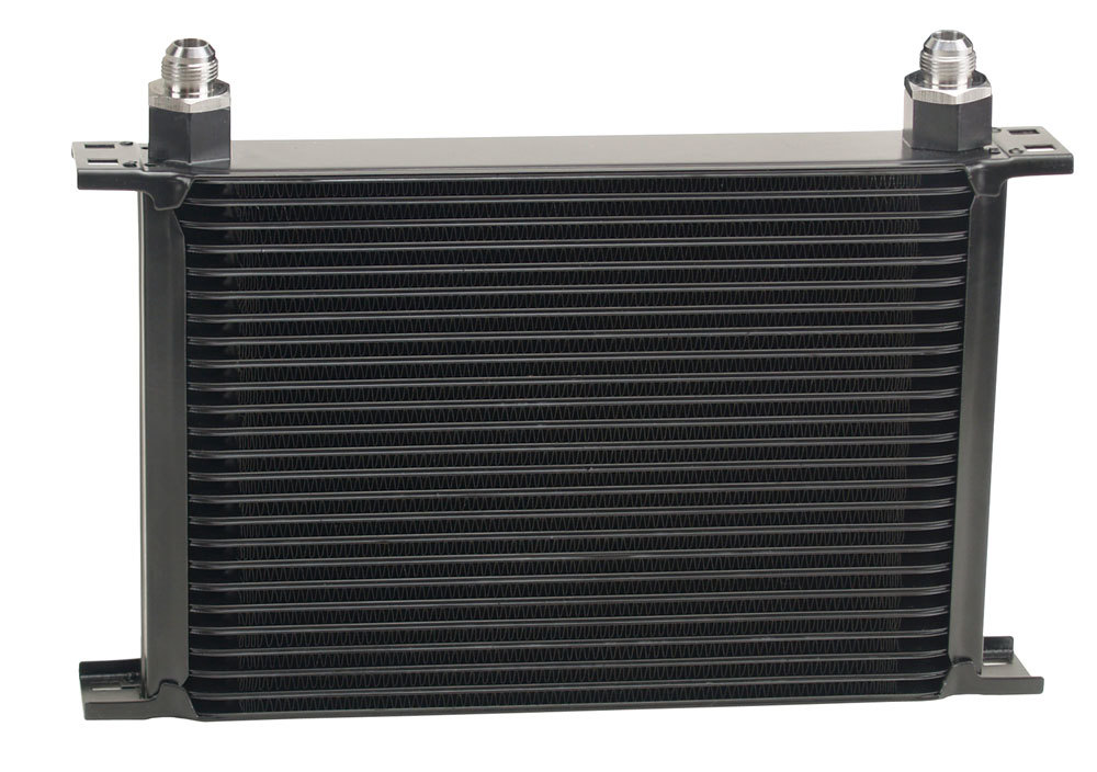 Fluid Cooler – 13 x 9.313 x 2 in – Plate Type – 10 AN Female O-Ring Inlet / Outlet – 8 AN Male Fittings – Aluminum – Black Powder Coat – Universal – Each