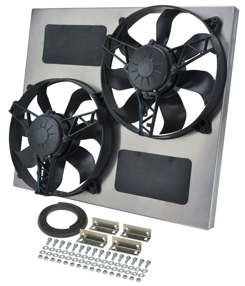 Electric Cooling Fan – HO RAD – Dual 11 in Fan – Puller – 3750 CFM – 12V – Curved Blade – 22.25 x 19 in – 4.5 in Thick – Aluminum Shroud – Plastic – Kit