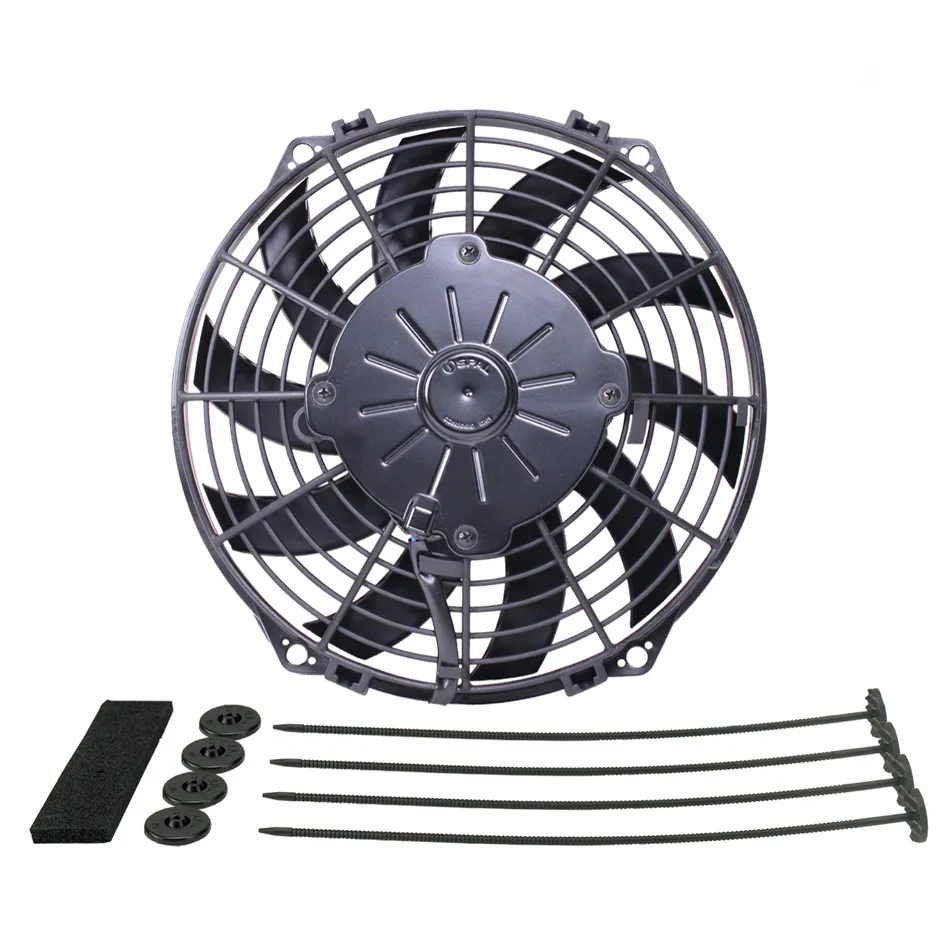 Electric Cooling Fan – Standard – 9 in Fan – Puller – 625 CFM – 12V – Curved Blade – 9.688 x 9.688 in – 2 in Thick – Plastic – Each