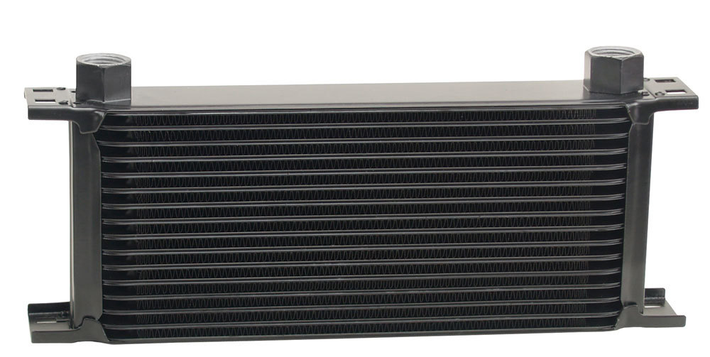 Fluid Cooler – 13 x 5.563 x 2 in – Plate Type – 10 AN Female O-Ring Inlet / Outlet – Aluminum – Black Powder Coat – Universal – Each
