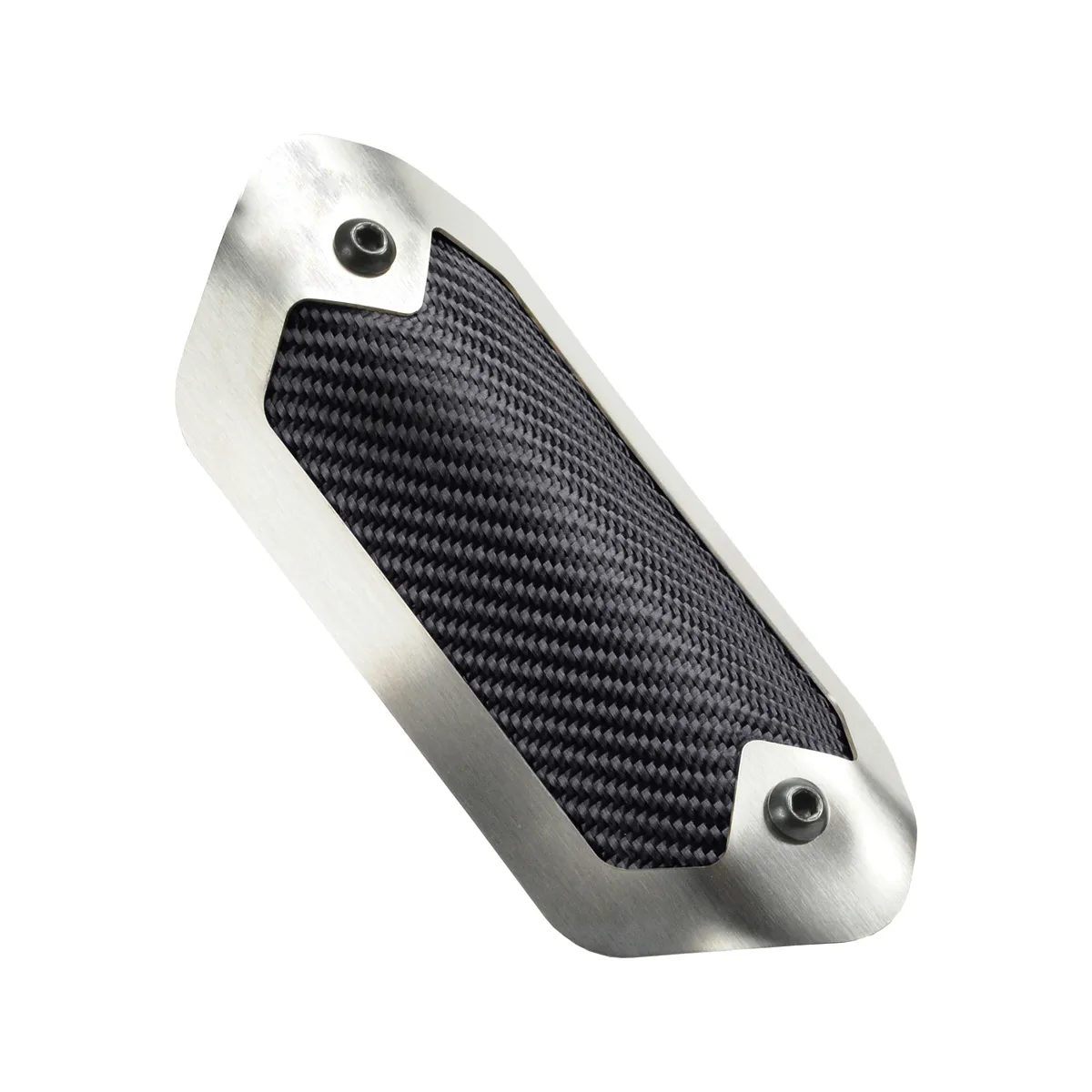 Exhaust Heat Shield – ONYX Pipe Shield – 3-1/2 x 6-1/2 in – Clamp-On – Trim Ring Included – Woven Fiberglass – Brushed / Carbon Fiber Look – Each