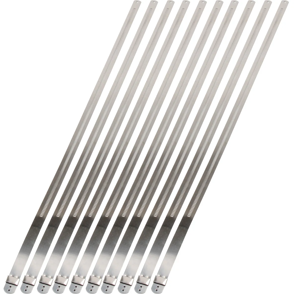 Exhaust Wrap Ties – Locking – 12 mm Wide – 20 in Long – Heat Resistant – Stainless – Set of 10