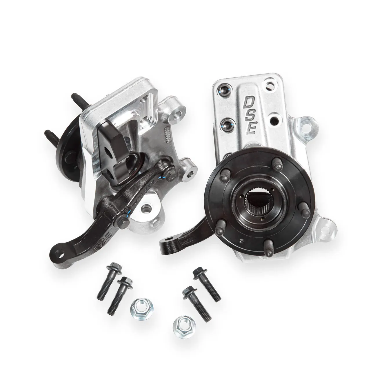 Spindle – Lowered 2 in – Driver / Passenger Side – Wheel Bearings / Hardware Included – Aluminum – Natural – Ford Mustang 1979-93 – Pair