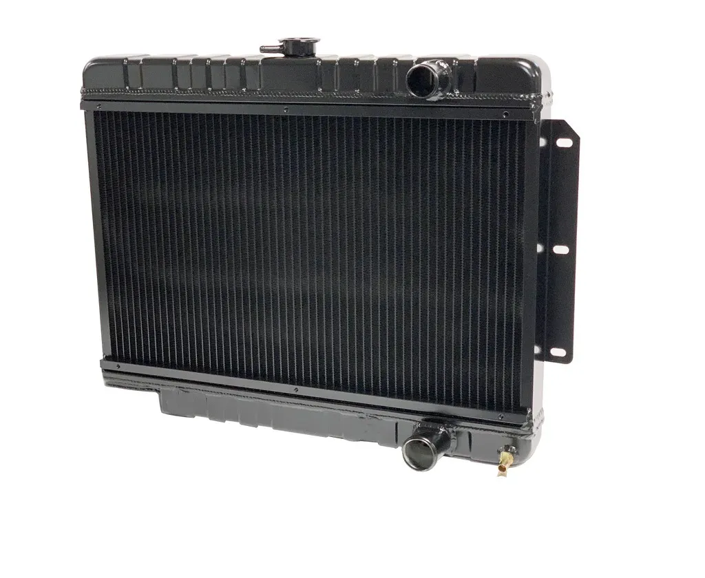 Radiator – Direct Fit – 28 in W x 20.5 in H x 3 in D – Single Pass – Passenger Side Inlet – Passenger Side Outlet – Automatic Transmission – Aluminum – Black Paint – GM B-Body 1959-64 – Each