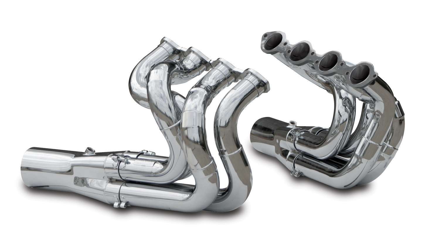 Headers – Drag – 2.25 to 2.375 in Primary – 4.5 in Collector – Steel – Chrome – Big Block Chevy – Dragster – Pair