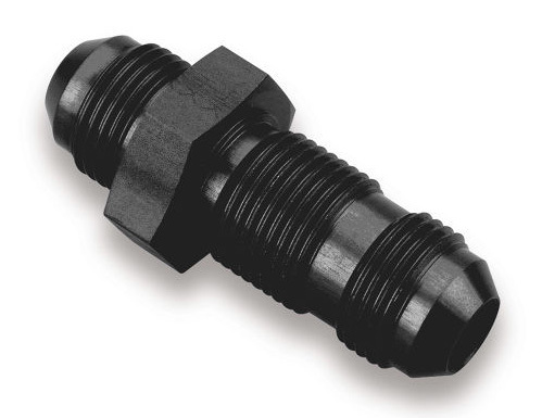 Fitting – Bulkhead – Straight – 12 AN Male to 12 AN Male Bulkhead – Aluminum – Black Anodized – Each