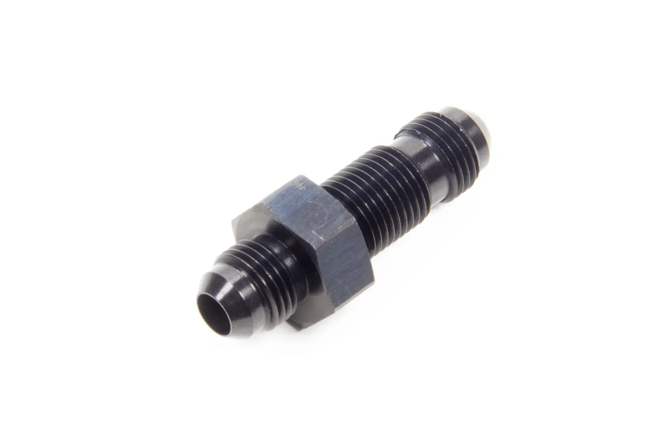 Fitting – Bulkhead – Straight – 6 AN Male to 6 AN Male Bulkhead – Aluminum – Black Anodized – Each