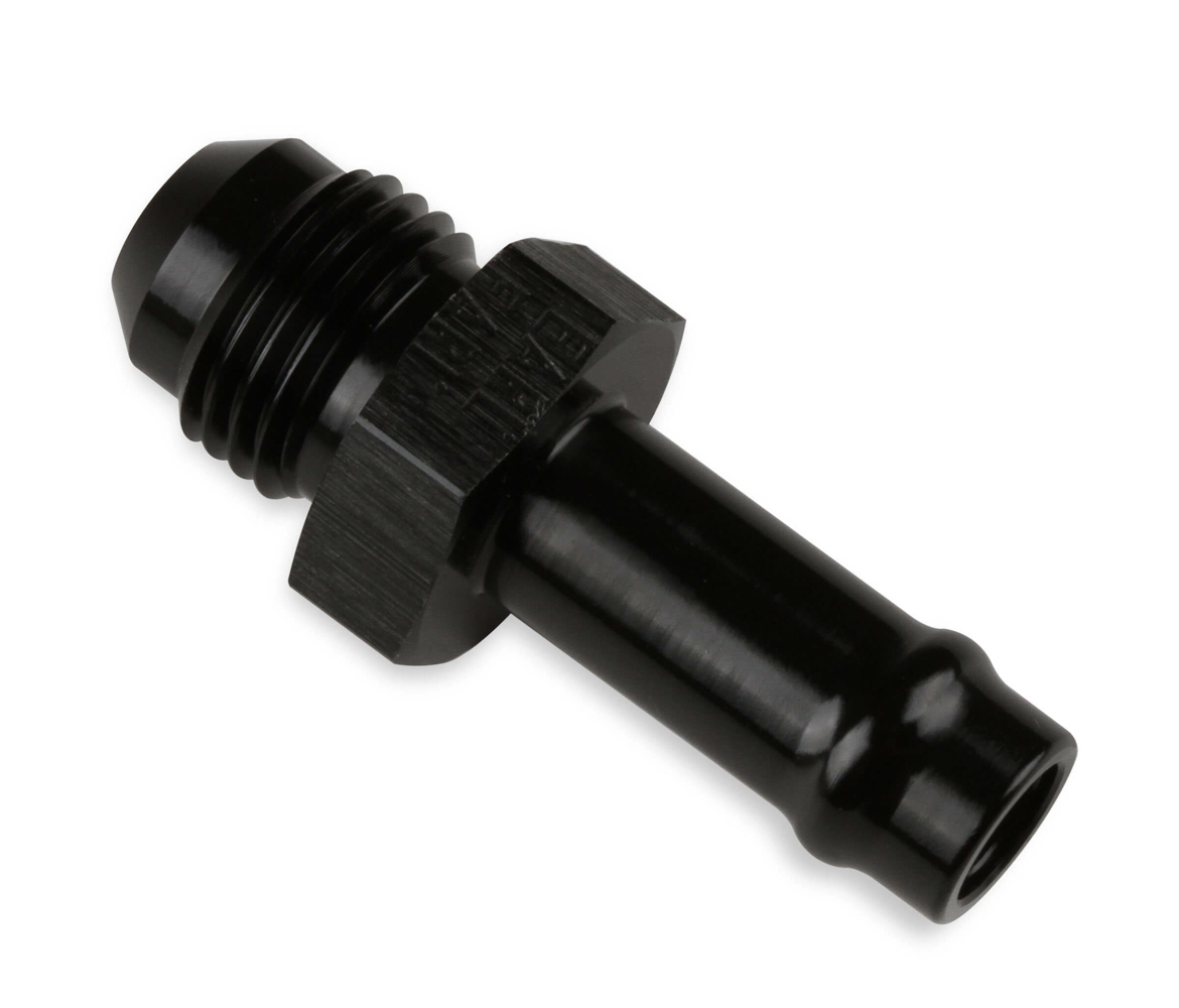 Fitting – Vapor Guard – Adapter – Straight – 6 AN Male to 3/8 in Hose Barb – Aluminum – Black Anodized – Each