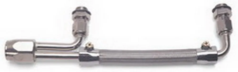 Carburetor Fuel Line – 3/8 in NPT Female Inlet – Dual 5/8-20 in Female Outlets – Stainless Hose – Chrome Plated – Dual Quad – Edelbrock Carbs – Kit
