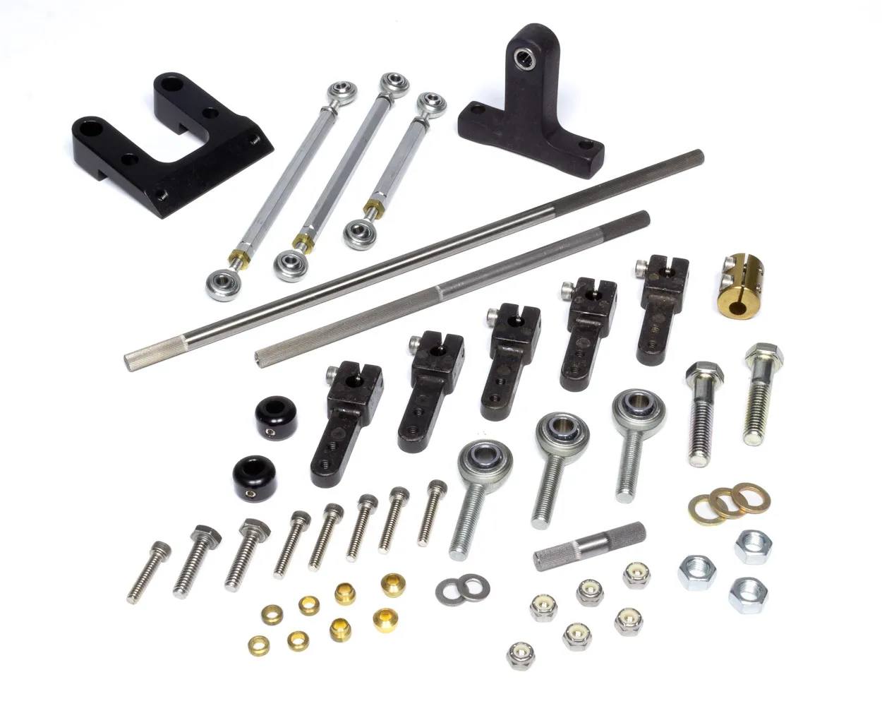 Throttle Linkage – Profiler – Side Mount – Dual Quad – Aluminum / Steel – Black Anodized / Zinc Oxide – Dominator Carburetors – Small Block Chevy – Kit