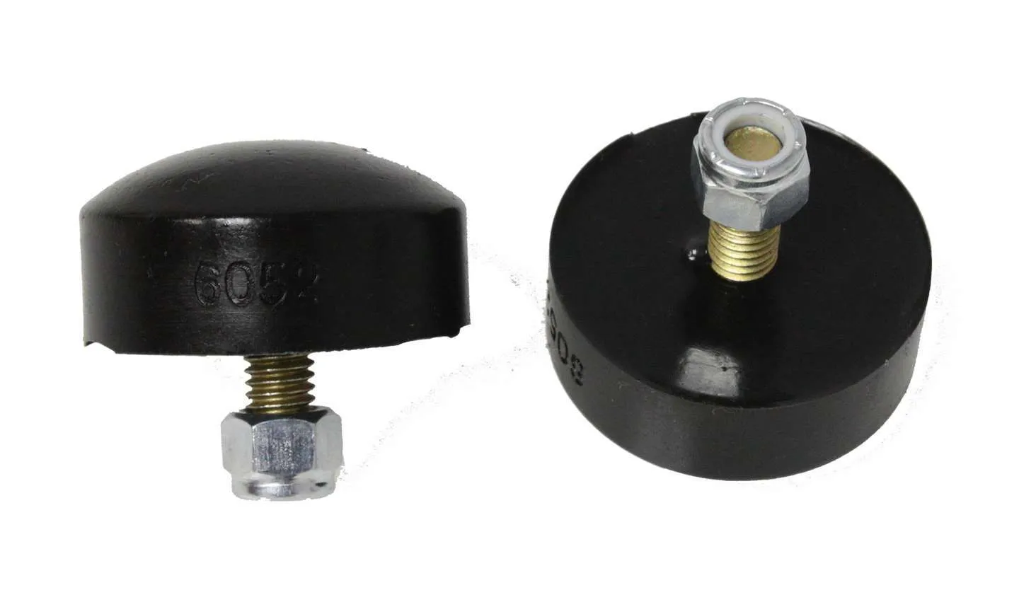 Bump Stop – Hyper-Flex – Button Head – 2 in OD – 1 in Tall – 3/8 in Stud Mount – lock Nut – Polyurethane – Black – Universal – Pair