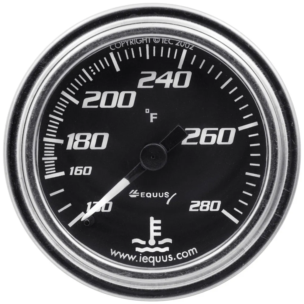 Water Temperature Gauge – 7000 Classic Series – 130-280 Degree F – Mechanical – Analog – Full Sweep – 2 in Diameter – Black Face – Each