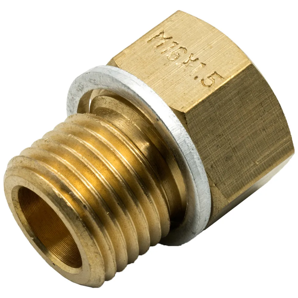 Fitting – Adapter – Straight – 5/8-18 in Female to 16 mm x 1.50 Male – Crush Washer – Brass – Natural – Each