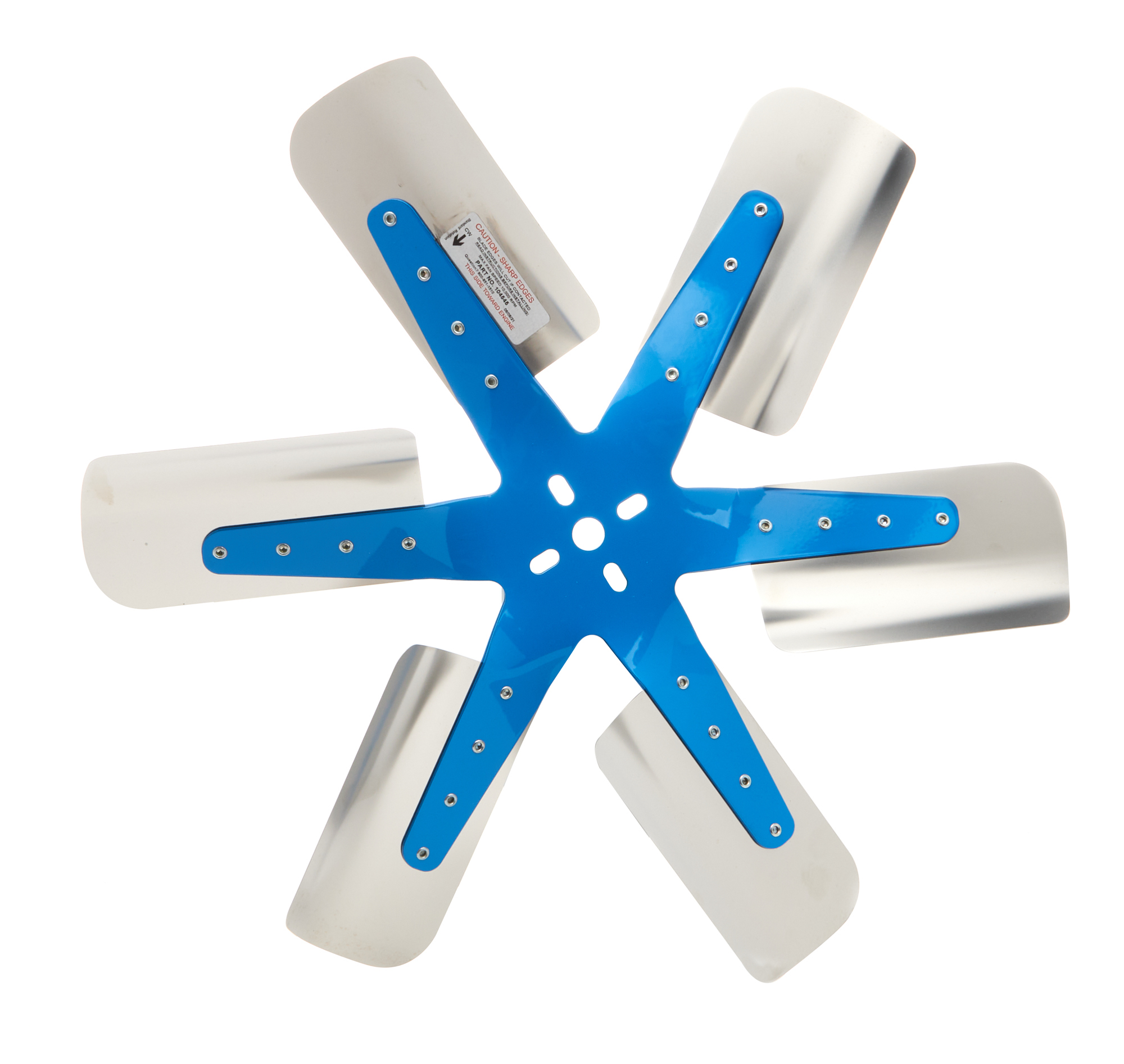 Mechanical Cooling Fan – Standard Rotation Flex Fan – 19 in Fan – 6 Blade – 5/8 in Pilot – Universal Bolt Pattern – Steel Hub / Stainless Blades – Blue / Natural – Each