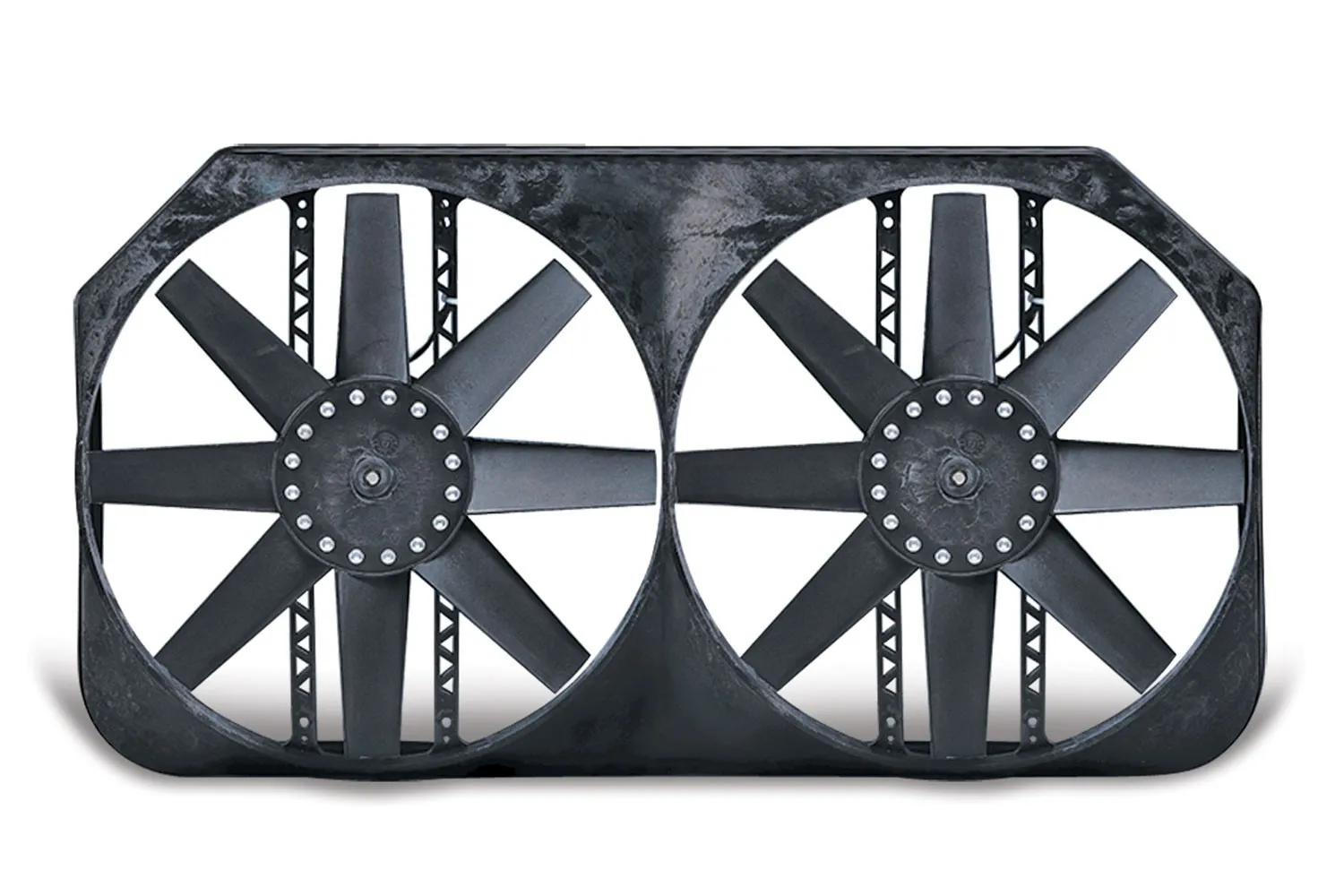 Electric Cooling Fan – Direct Fit – Dual 15 in Fan – Puller – 5500 CFM – 12V – Straight Blade – Controller – Plastic – GM Fullsize SUV / Truck 1992-99 – Kit