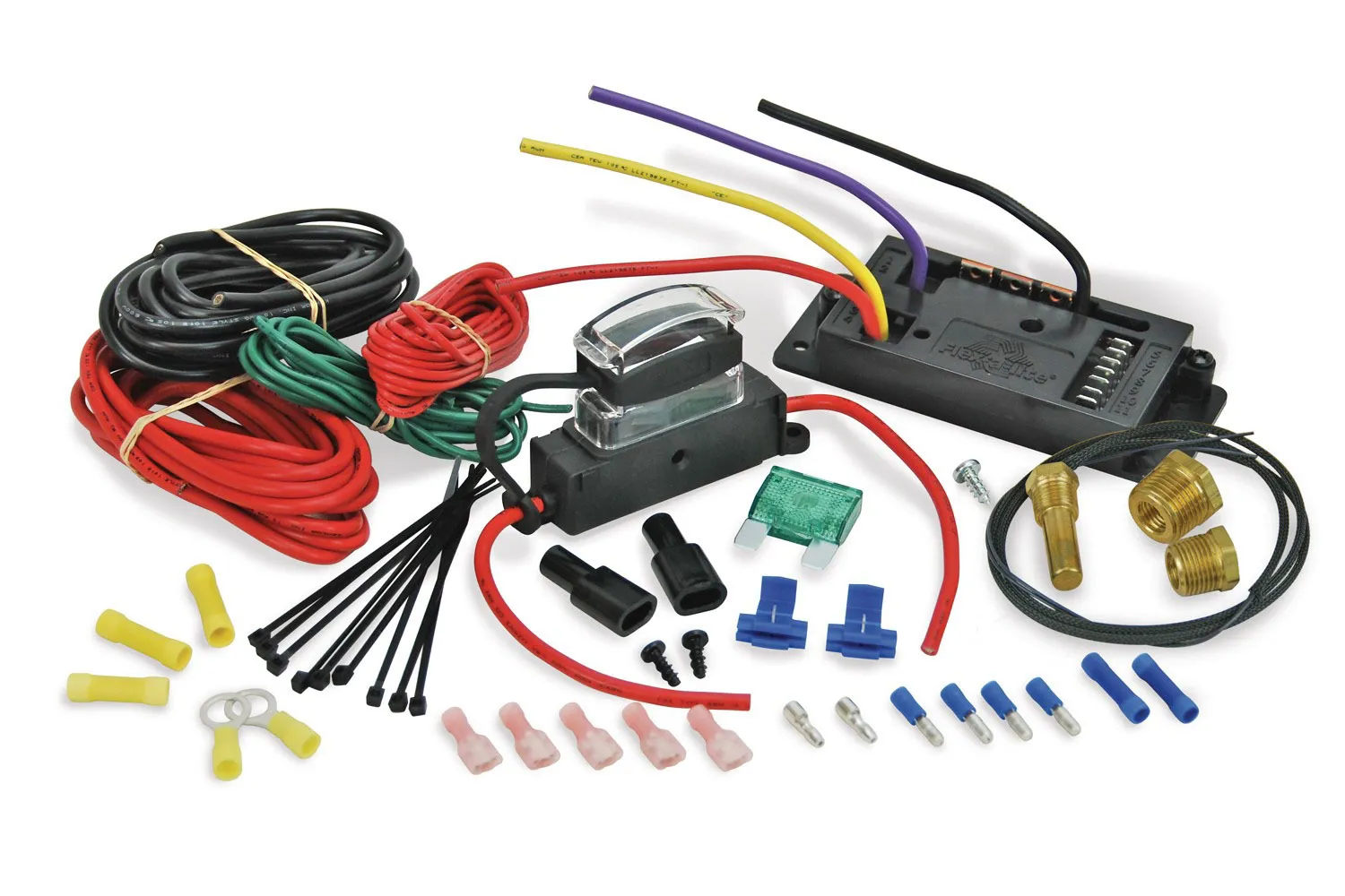 Fan Controller – Adjustable – 160-240 Degree F Activation Range – 1/4 in NPT Temperature Sensor – 3/8 in NPT Adapters – Harness – Kit