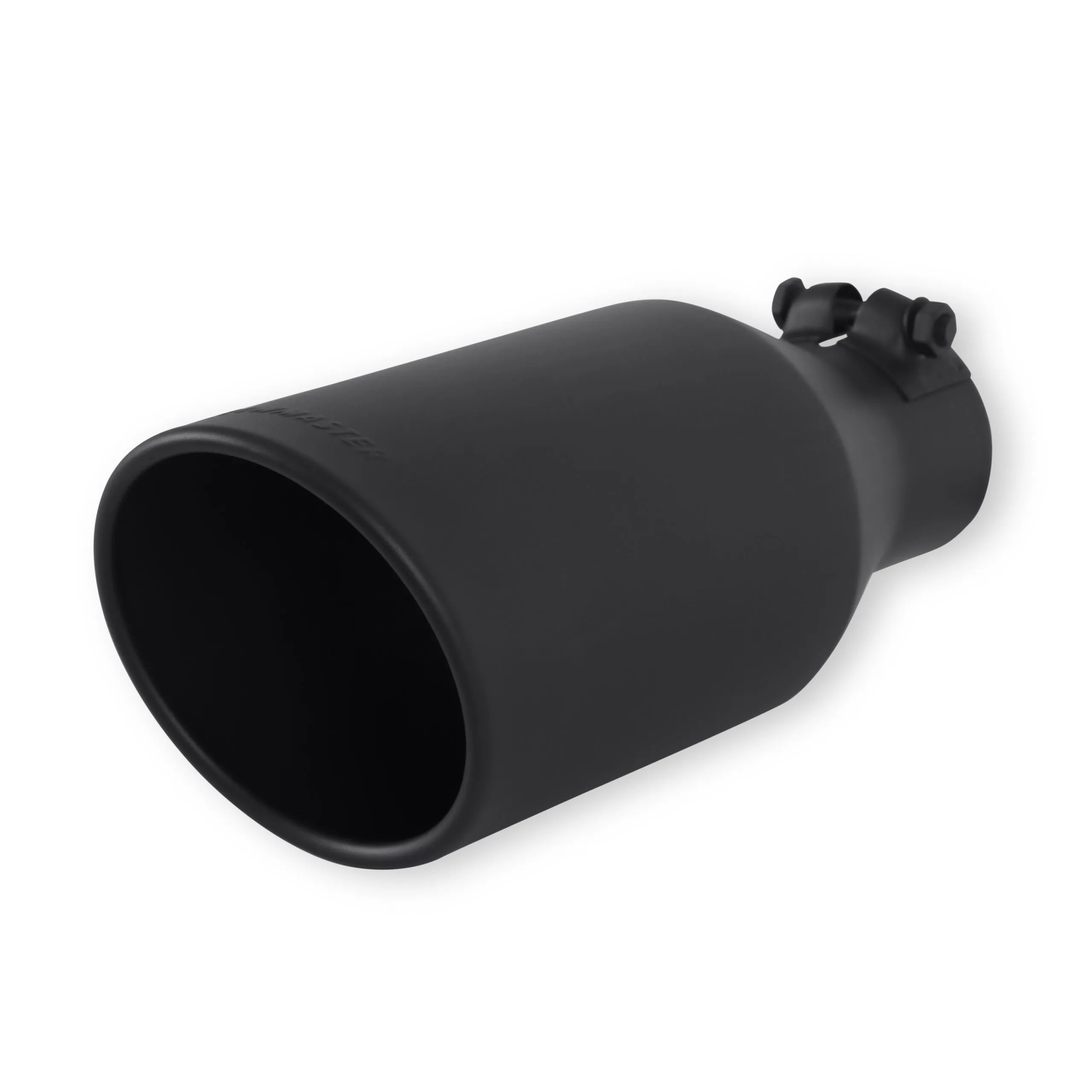 Exhaust Tip – Clamp-On – 2.5 in Inlet Pipe Diameter – 4.5 in Round Outlet – 11 in Long – Double Wall – Rolled Edge – Angled Cut – Stainless – Black Ceramic Coated – Each