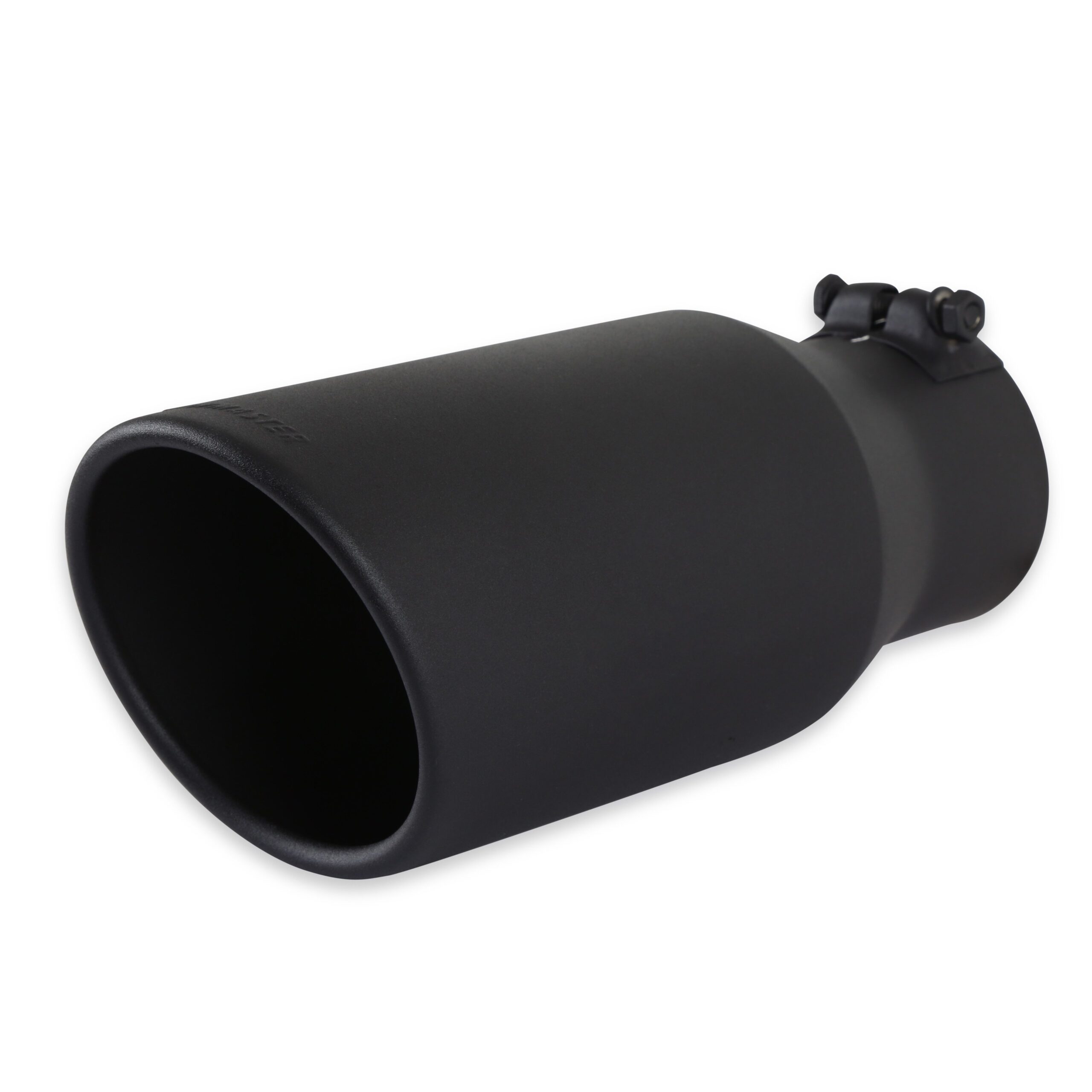 Exhaust Tip – Clamp-On – 3.5 in Inlet Pipe Diameter – 5 in Round Outlet – 12 in Long – Double Wall – Rolled Edge – Angled Cut – Stainless – Black Ceramic Coated – Each