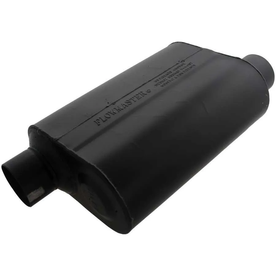 Muffler – Super 40 – 3 in Offset Inlet – 3 in Offset Outlet – 13.5 x 10 x 5 in Oval Body – 19.5 in Long – Steel – Black Paint – Universal – Each