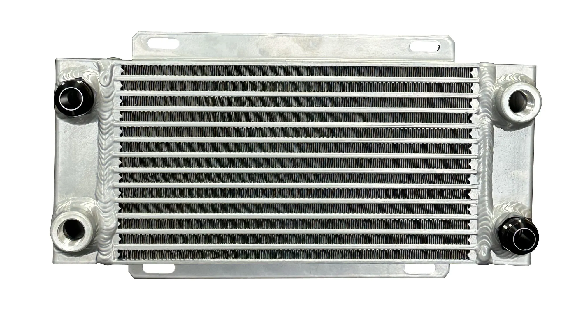 Fluid Cooler – 14.75 x 8.75 x 4.188 in – Plate Type – 12 AN Male Inlet / Outlet – Two 1/2 in NPT Female Auxiliary Ports – Aluminum – Natural – Universal – Each
