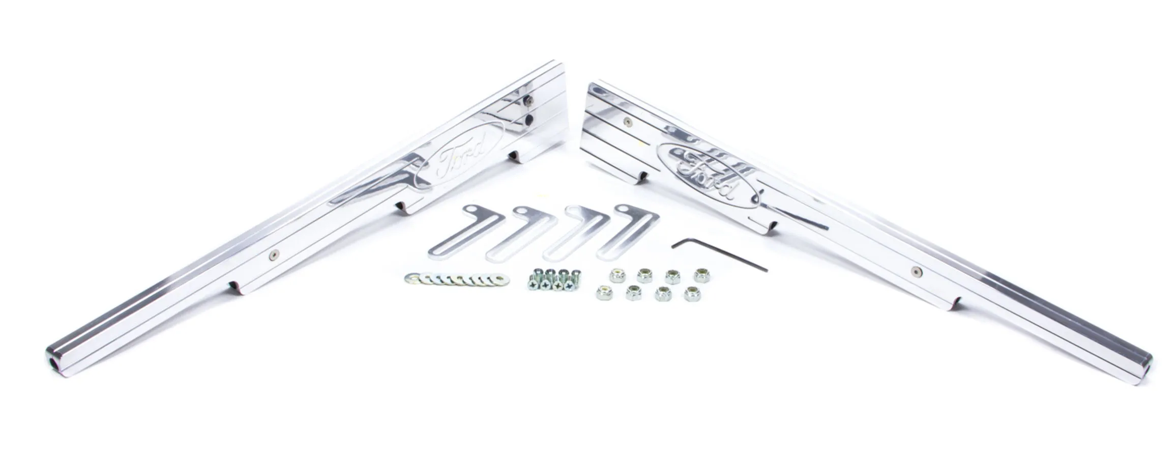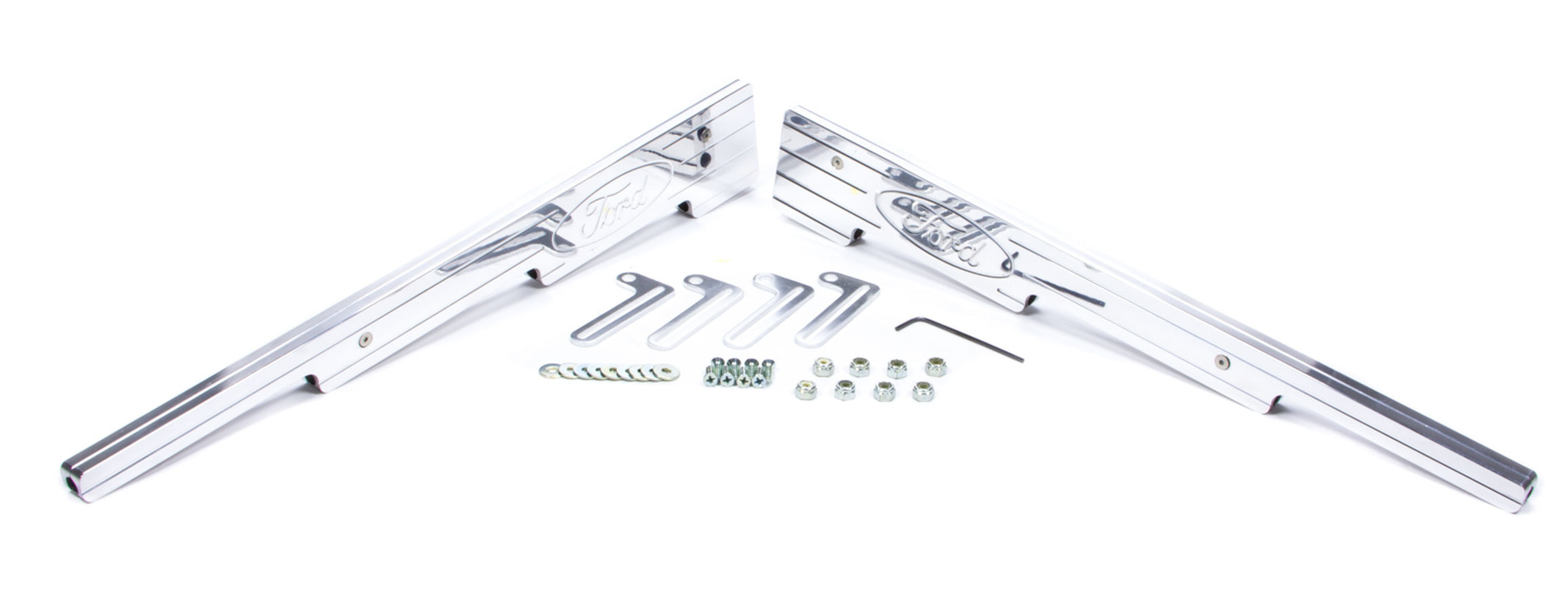 Spark Plug Wire Loom – 4 Wire – 8-9 mm – Valve Cover Mount – Ball Milled / Ford Logo – Aluminum – Polished – Ford V8 – Kit