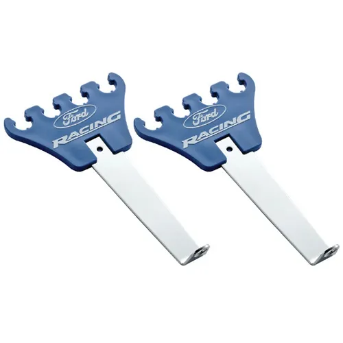 Spark Plug Wire Loom – 4 Wire – 7-8.5 mm – Valve Cover Mount – Ford Racing Logo – Aluminum / Plastic – Chrome / Blue – Small Block Ford – Pair