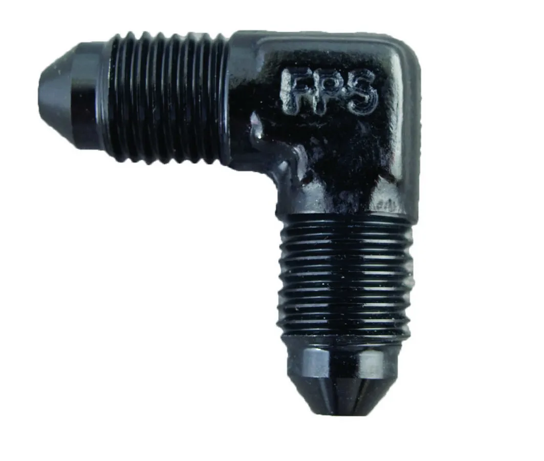 Fitting – Adapter – 90 Degree – 12 AN Male to 12 AN Male – Aluminum – Black Anodized – Each