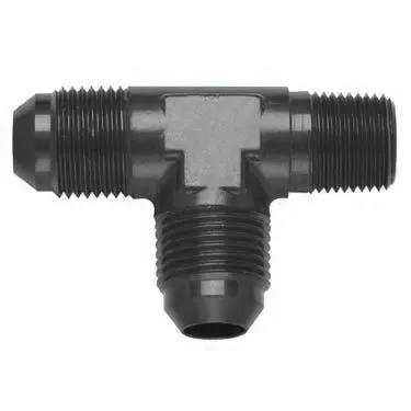 Fitting – Adapter Tee – 4 AN Male x 4 AN Male x 1/8 in NPT Male – Aluminum – Black Anodized – Each