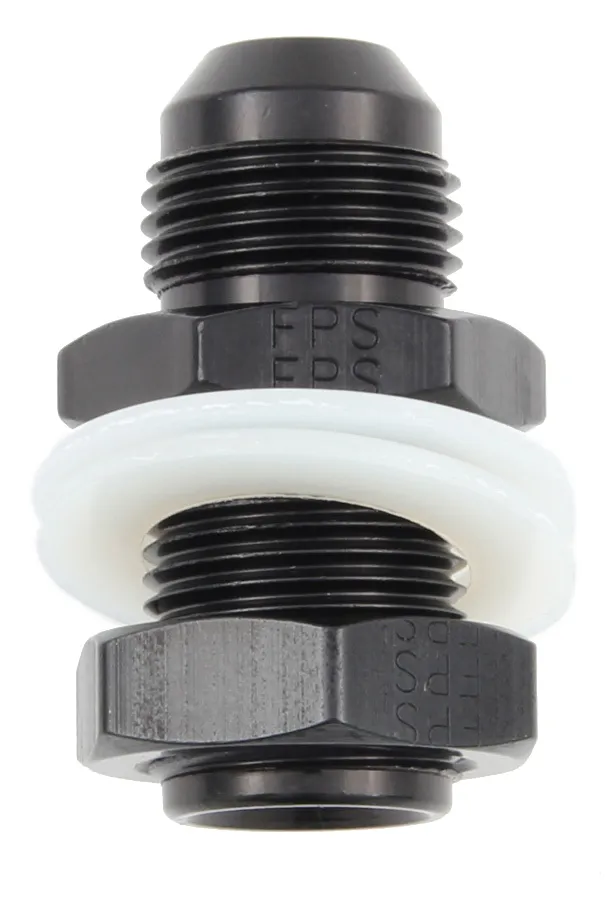 Fitting – Bulkhead – Straight – 6 AN Male to 6 AN Male Bulkhead – Aluminum – Black Anodized – Each
