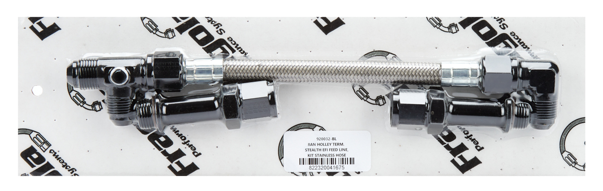 Carburetor Fuel Line – 8 AN Male Inlet – Dual 3/4-16 in Male O-Ring Outlets – Braided Stainless Hose – Aluminum – Black Anodized – Holley Terminator – Kit
