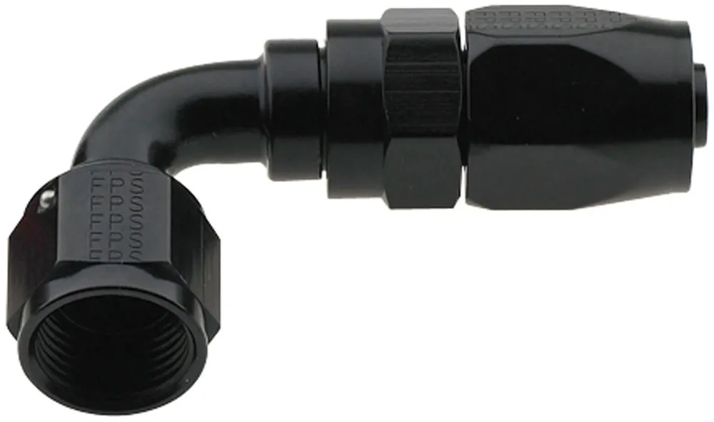 Fitting – Hose End – 2000 Series Pro-Flow – 90 Degree – 6 AN Hose to 6 AN Female – Swivel – Aluminum – Black Anodized – Each